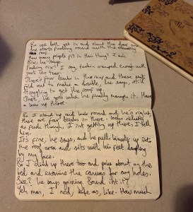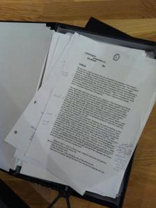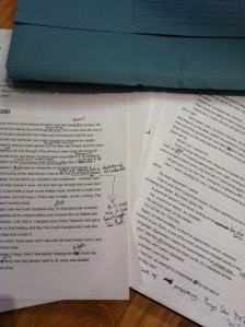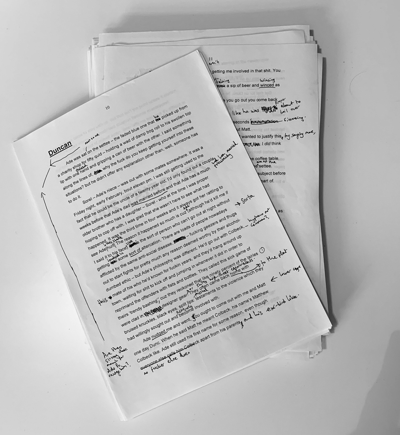 I wrote the novel while studying for an MA in Creative Writing at the Manchester Writing School. Many chapters were ‘workshopped’ during these classes. Here’s a page with annotations from one of my classmates.