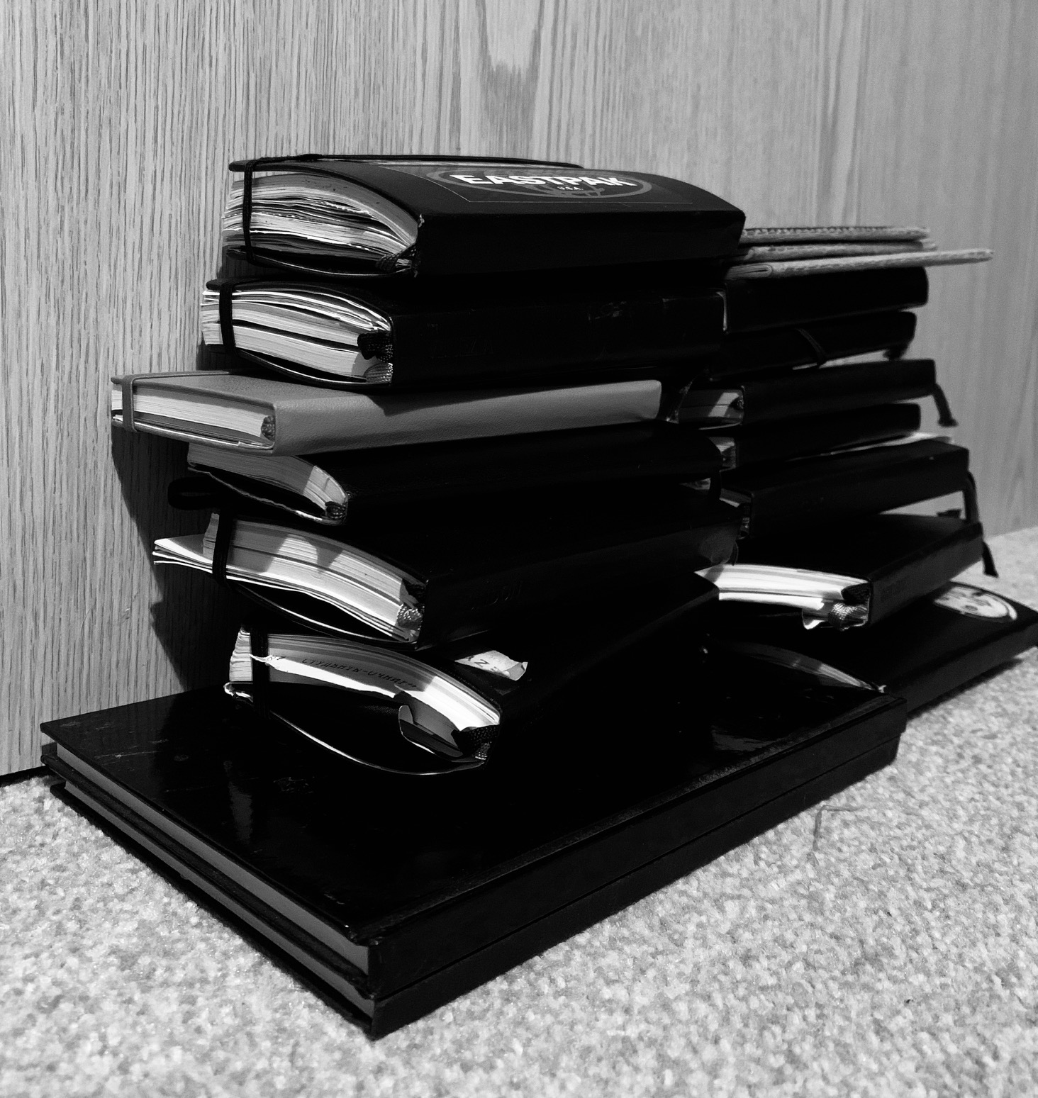 Some of the notebooks I sketched ideas in. Some of these were kindly sent to me by Moleskine Italy after I wrote to them in early 2007.